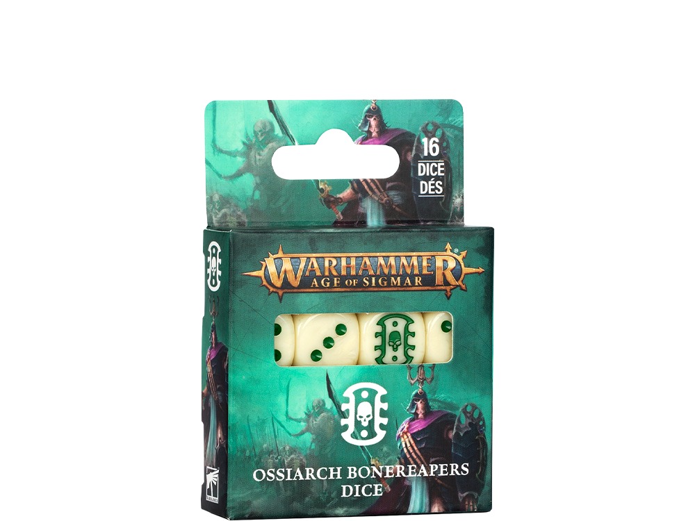 Les légions des Collecteurs Ossiarques sont animées par les âmes de milliers de guerriers et de stratèges de génie. Ne vous laissez pas intimider par tant de compétence, avec ce set de 28 cartes de charte et de 17 cartes de Fer de Lance pour vous y référer. Vous pouvez aussi invoquer les bénédictions de Nagash avec un set de 16 dés des Collecteurs Ossiarques, moulés en plastique couleur d’os avec des marquages vert foncé et l’icône de la faction sur la face du 6.