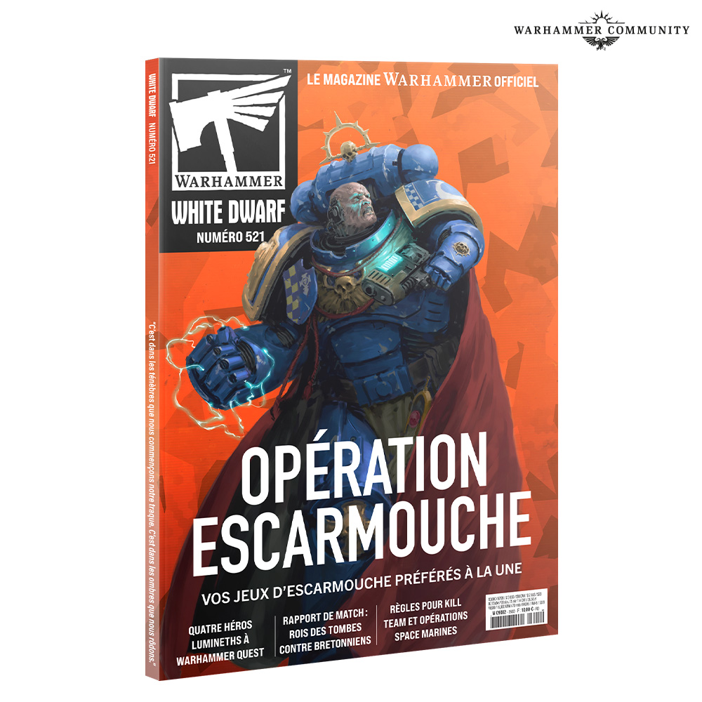 White Dwarf revient lui aussi avec un nouveau numéro électrique, et se plonge cette fois dans la vaste nébuleuse des jeux “d’escarmouche” à taille plus réduite, qui se taillent leur petit bonhomme de chemin dans les mondes de Warhammer. De nouvelles règles pour Warhammer Quest: Aigue-sombre permettent d’envoyer quatre champions lumineths dans l’Abbaye de Jade pour la purger de la souillure de Nurgle, tandis que le mini-jeu Opérations Space Marines se poursuit avec de nouvelles missions, de nouveaux ennemis et de nouvelles options pour votre escouade personnalisée.