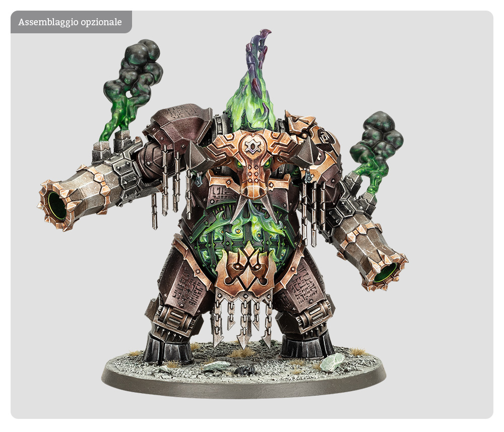 In alternativa, con questo kit puoi assemblare un Fabbro Demoniaco su Tauro Infernale, un Eroe che cambia le sorti della battaglia lanciando sortilegi potenti dalla cima di una statua vivente, per poi andare alla carica infilzando e schiacciando i nemici. Il Fabbro Demoniaco ha a disposizione una selezione di due teste e due opzioni per ciascun braccio, mentre per il Tauro Infernale puoi scegliere tra due paia di corna e sulla fronte puoi assemblare una pietra preziosa con o senza fumo.