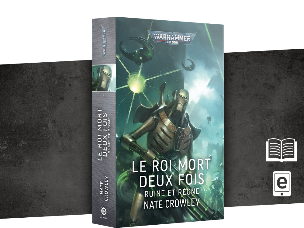 Immergiti nelle maestose atmosfere dei Necron con le edizioni francese e tedesca di The Twice-Dead King Omnibus di Nate Crowley, che raccoglie due romanzi straordinari, una novella e tre racconti. Le prime due storie narrano di Oltyx, nobile decaduto, e della sua missione per riconquistare le terre ancestrali da infidi traditori e poi difenderle nuovamente da chi vorrebbe vedere sconfitta la dinastia appena rinata.