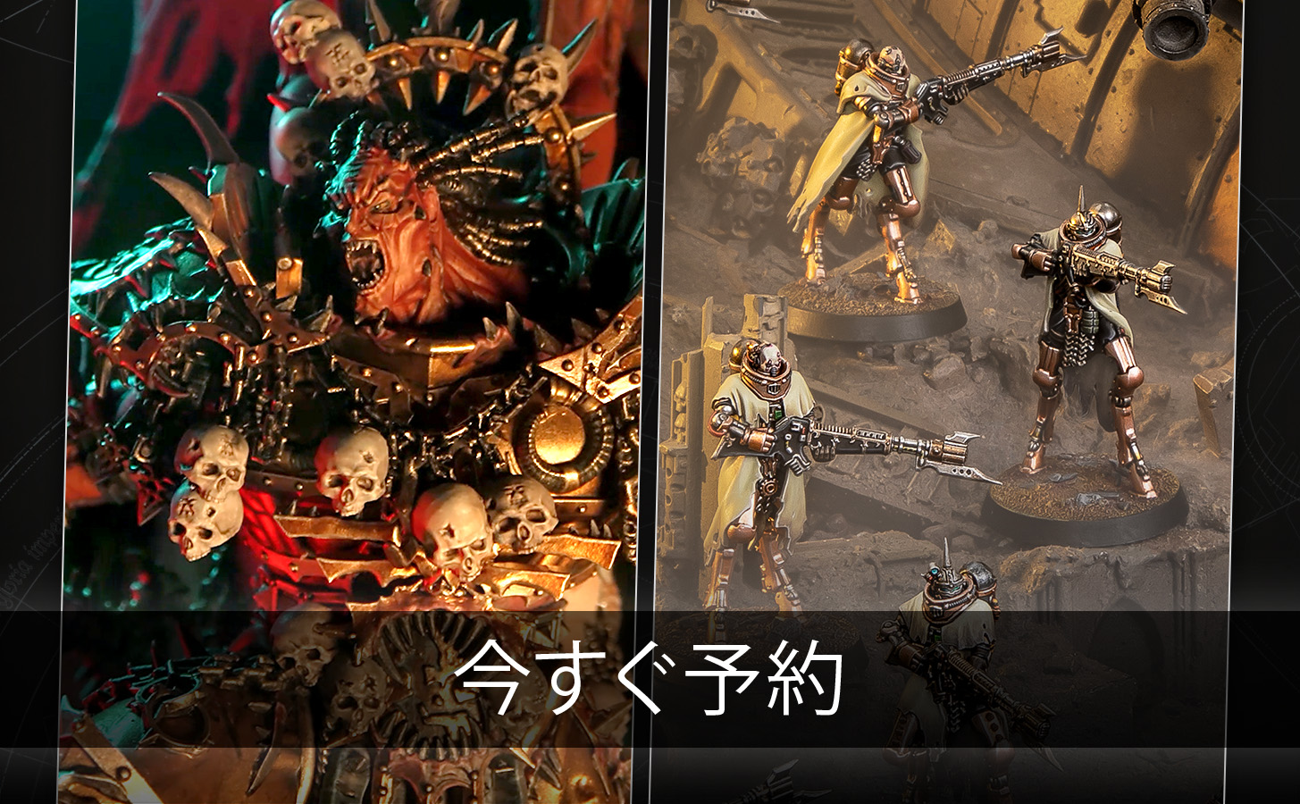 巨大な怪物と機械兵士たちが、The Horus Heresyの争いに加わろうと意気込んでいる。異なる方法で強化された定命の者たち——Angron TransfiguredとSkitarii Battle Groupの予約受付が本日開始された! その他にも、受注生産品のWarriors of Chaosや2体の記念ミニチュア、そして『Middle-earth™ Strategy Battle Game』に使える新たなサプリメントや恐るべきShelobのミニチュアも用意されているぞ。