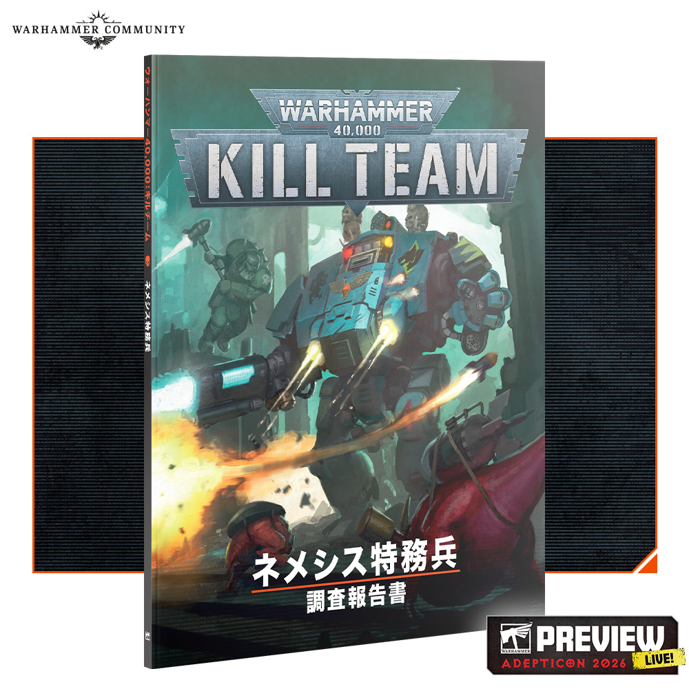 キルゾーンで圧倒的な脅威になる大型生物が現れるのは、『デヴランの恐怖』だけではない。キルチームの新しい拡張版書籍では、インペリアルナイトとケイオスナイトも含まれる全陣営のミニチュアに対応した柔軟なルールを使って、君のお気に入りのビッグな兵を戦闘に参加させることができる。これらの兵は「ネメシス特務兵」として、通常の特務兵の代わりにゲームで使用可能だ。