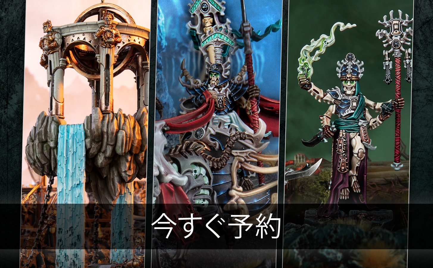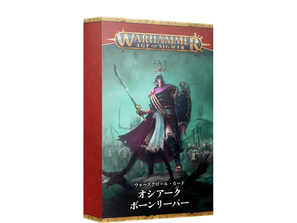 この陣営の必携書である『バトルトーム:オシアーク・ボーンリーパー』を手に、大死霊術師の旗のもと不死の兵団を招集し〈定命の諸領域〉を支配しよう。このバトルトームには背景資料、更新されたルール、そして死の骸骨連隊を映した素晴らしいミニチュアの写真が収録されている。オシアーク・ボーンリーパーのアーミーを配置する為に必要なすべてのウォースクロールや、スピアヘッドの軍勢と『栄光への道』キャンペーンのルールも載っているぞ。