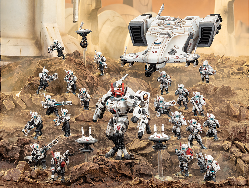 新興勢力のタウ・エンパイアは、優れたテクノロジーと厳格な戦闘教条を用いて、発見したすべての文化に対し、タウ社会の根幹である〈大善大同〉の概念を説く**。
