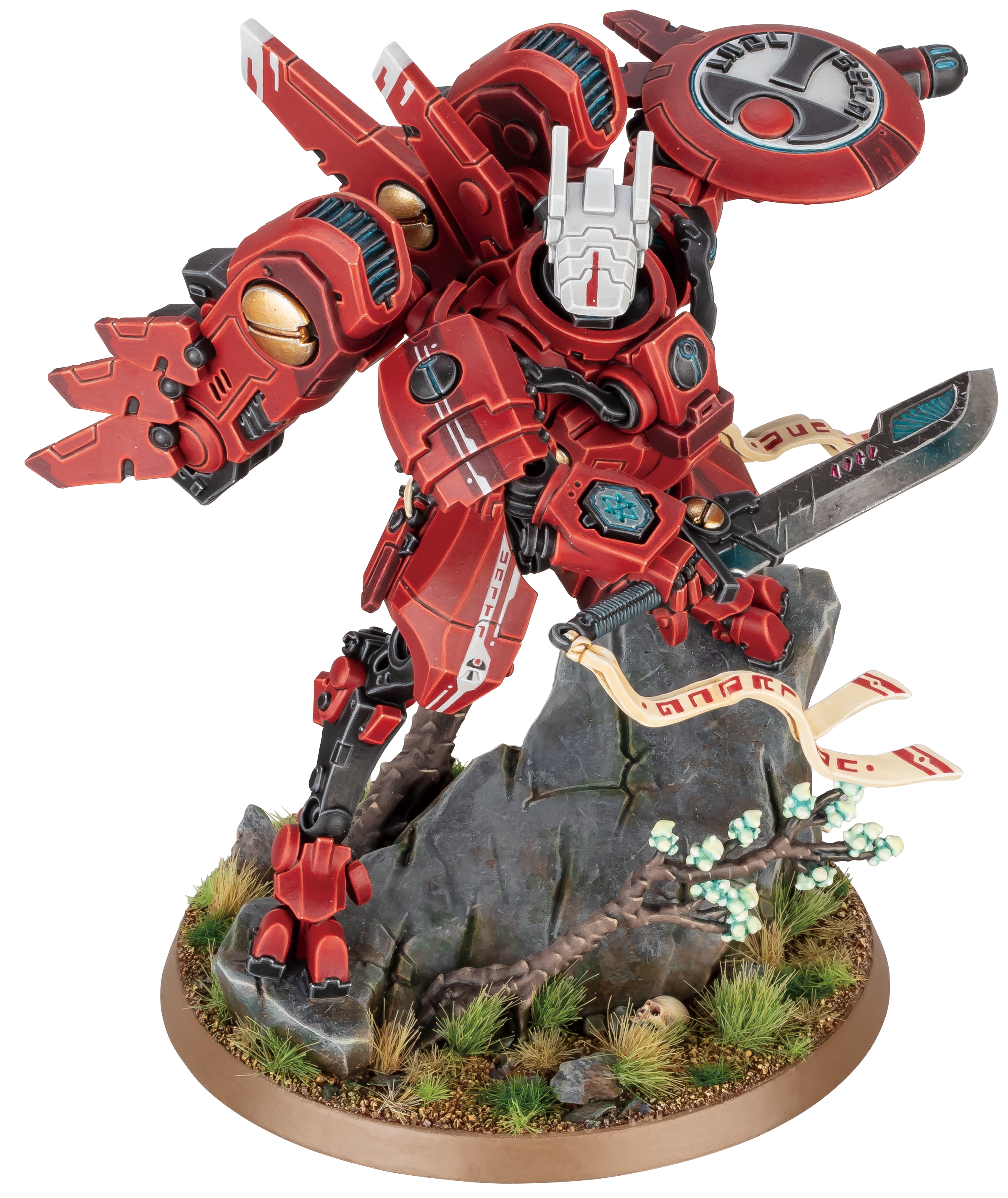 ファーサイトとして知られるオ=ショーヴァ司令官は、タウの伝説の戦士であり、議論の的となっている存在だ***。この目を惹くミニチュアは、アイコニックな赤いXV-86スーパーノヴァ・バトルスーツに身をつつんだファーサイトを再現している。情景ベースには、風に揺られた桜の木が付いている。